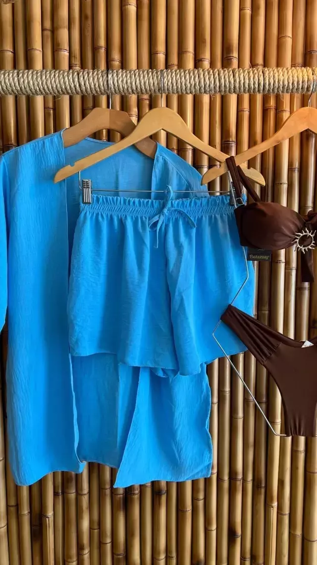 Conjunto Kimono e Short Crepe Liso Um clássico que irradia elegância e sofisticação. O conjunto de kimono com shortinho é a escolha ideal para quem busca um look versátil e cheio de estilo. Feito em tecido Visolinho - Crepe - Sedinha, proporciona um toque suave e um caimento perfeito que valoriza a silhueta feminina.