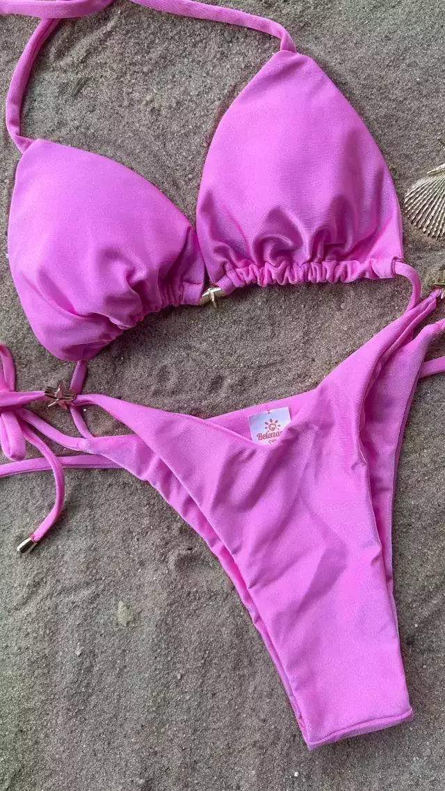 O clássico que nunca sai de moda! O Biquíni Cortininha Estrela traz um top versátil, com regulagem que valoriza o colo e se adapta perfeitamente ao corpo. A calcinha com lacinho lateral é charmosa, ajustável e ideal para quem gosta de marcar menos o corpo, com caimento leve e feminino. Um modelo atemporal, perfeito para arrasar na praia ou na piscina!