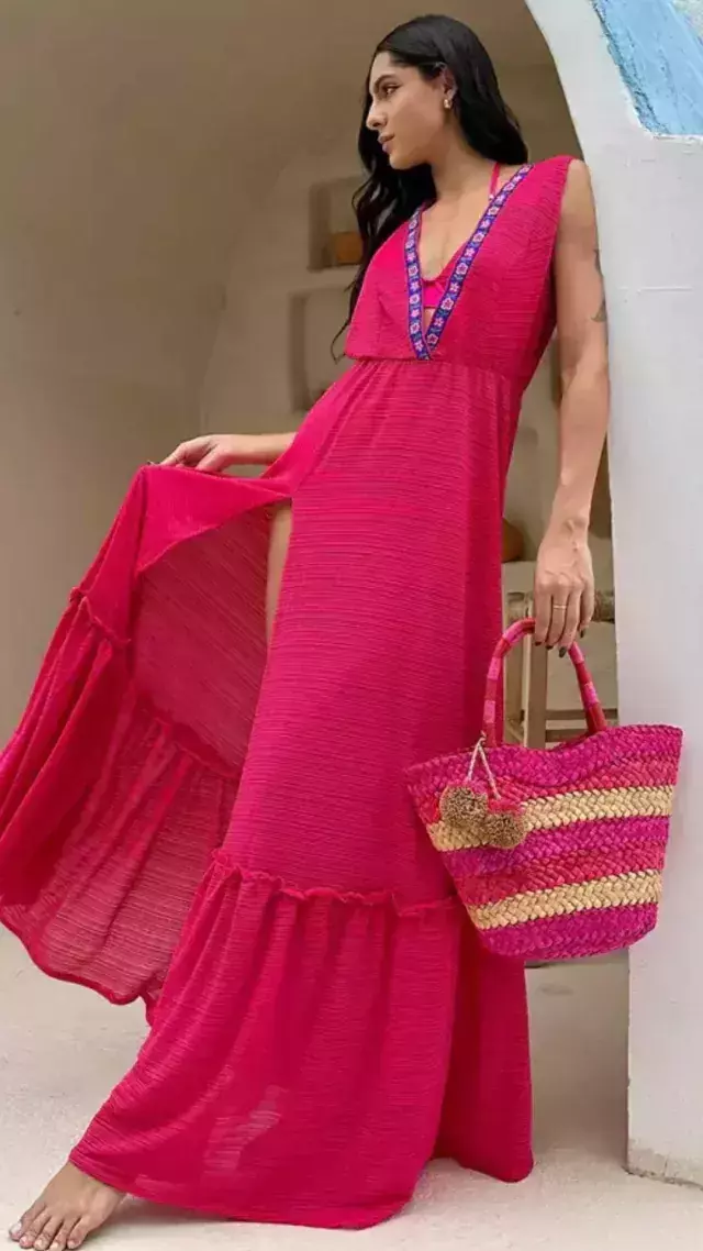 Saída Longa Cavada Devorê - Estilo e Conforto para o Verão! 🌊✨ Deixe seus dias ensolarados ainda mais especiais com a nossa Saída de Praia Longa Cavada! Com lindos detalhes na gola, este modelo é perfeito para quem busca elegância à beira-mar. Feita em tecido leve, se adapta ao tamanho único (médio), proporcionando conforto e liberdade de movimento. Não perca a chance de brilhar! Adicione a Saída Longa Cavada ao seu guarda-roupa e arrase neste verão! ☀️